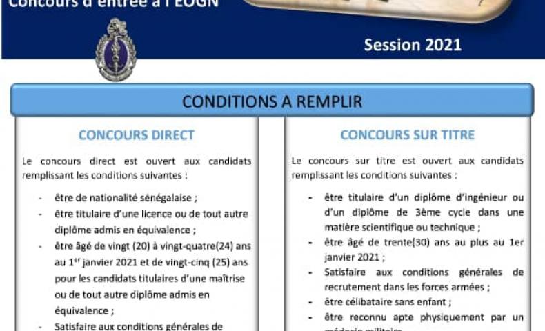 Gendarmerie: Communiqué relatif au dépot des dossiers du concours de l'EOGN
