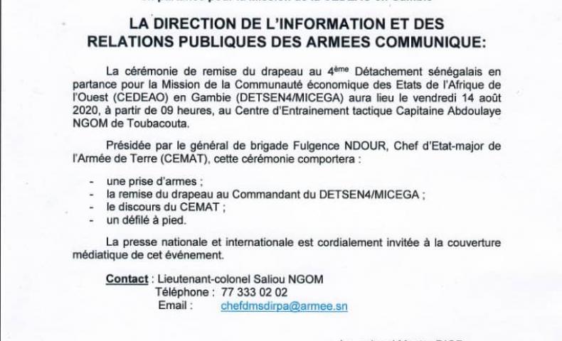 Cérémonie de la remise de drapeau au 4e Détachement sénégalaise en partance pour la Mission de la CEDEAO en Gambie